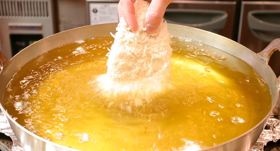 キャノーラ(菜種)、とうもろこしの2種の植物性の油を使用しています。キャノーラ油はカラッと黄金色に揚がり味にもコクが出ます。コーン油はリノール酸を多く含んでおり、コレステロールを下げる効果もあります。ロースかつを揚げる油は毎日新しい物に入れ替え、常にフレッシュな状態を保っています。